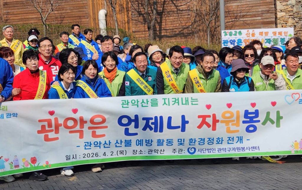 관악구(구청장 박준희)는 2일 오전 관악산 입구 폭포쉼터 광장에서 ‘2026년 관악산을 지켜내는 관악은 언제나 자원봉사’ 행사를 개최했다. 관악구자원봉사센터(이사장 유덕현)가 주관한 이번 […]