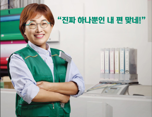 A.“고객 맞춤” 입니다. 그리고 제 좌우명은“스스로 만족하자.” 예요. 완벽 보다는 하루하루 최선을 다하고 결과에 긍정적으로 임합니다. 한때 슬로건이 “희망찬 기업”이었는데, 한 선배가 저를 “간판의 신”이라 부르더군요. 그떄부터 저는 “간판의 신” 이 되기로 했습니다.(웃음)