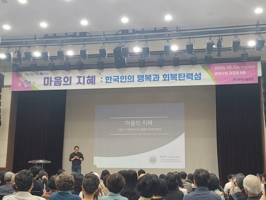 관악구 정신건강복지센터는 1일 오후 2시 관악구청 8층 대강당에서 아주대학교 심리학과 김경일 교수의 특강 “마음의 지혜: 한국인의 행복과 회복탄력성“을 개최했다. 이날 […]
