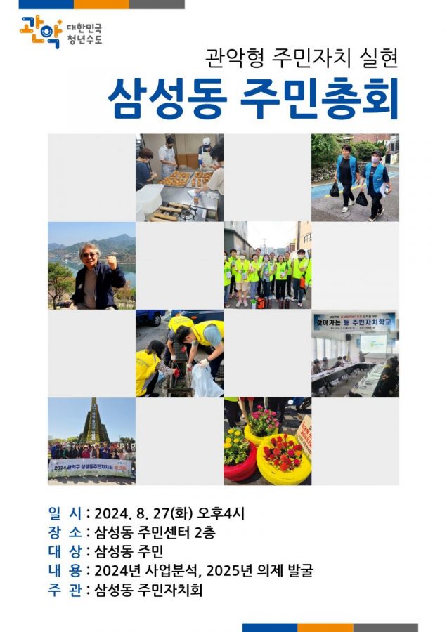 관악구 21개동 주민자치회는 다음달 23일까지 ‘2025년도 마을사업 결정을 위한 주민총회’를 순차적으로 개최한다고 밝혔다. 26일 보라매동을 시작으로 은천동, 삼성동 등 순차적으로 […]