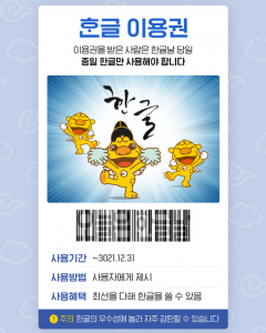 오늘은 #한글날! #한글이용권 무료로 배포합니다🎫💕 ※ 받으면 무조건 한글만 사용해야 됨 ※ #575돌_한글날 Source
