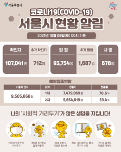 #코로나19 서울시 현황(10.10. 00시 기준) ✔국내 331,519번째 확진자 발생 ✔서울시 확진자 현황: 107,624명(전일대비+ 583) 🔎서울시 코로나19 통합 사이트: http://seoul.go.kr/coronaV/coronaStatus.do?sns=fb 🔎백신 […]