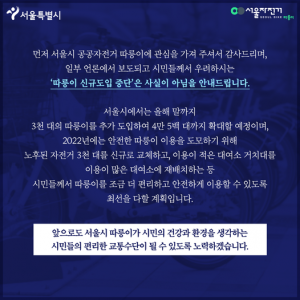 [알려드립니다] 먼저 서울시 공공자전거 따릉이에 관심을 가져 주셔서 감사드리며, 일부 언론에서 보도되고 시민들께서 우려하시는 ‘따릉이 신규도입 중단’은 사실이 아님을 안내드립니다. […]