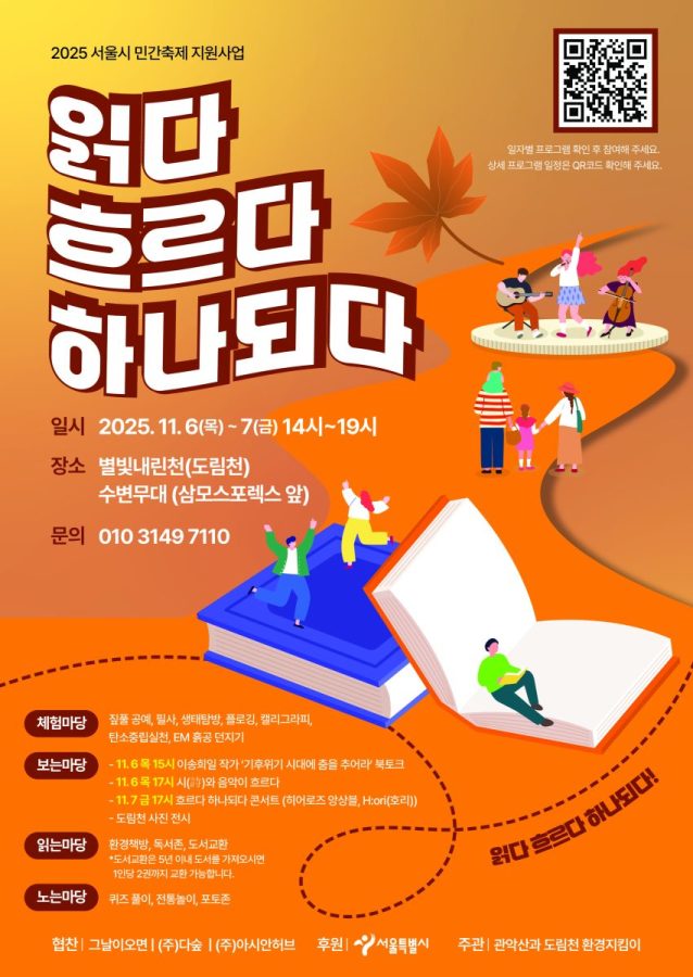 시민단체 ‘관악산과 도림천환경지킴이’가 주최하고 서울시가 후원하는 ‘다다다축제’(읽다, 흐르다, 하나되다)가 11월 6일과 7일 양일간 포근한 늦가을 날씨 속에서 시민들의 뜨거운 참여와 […]